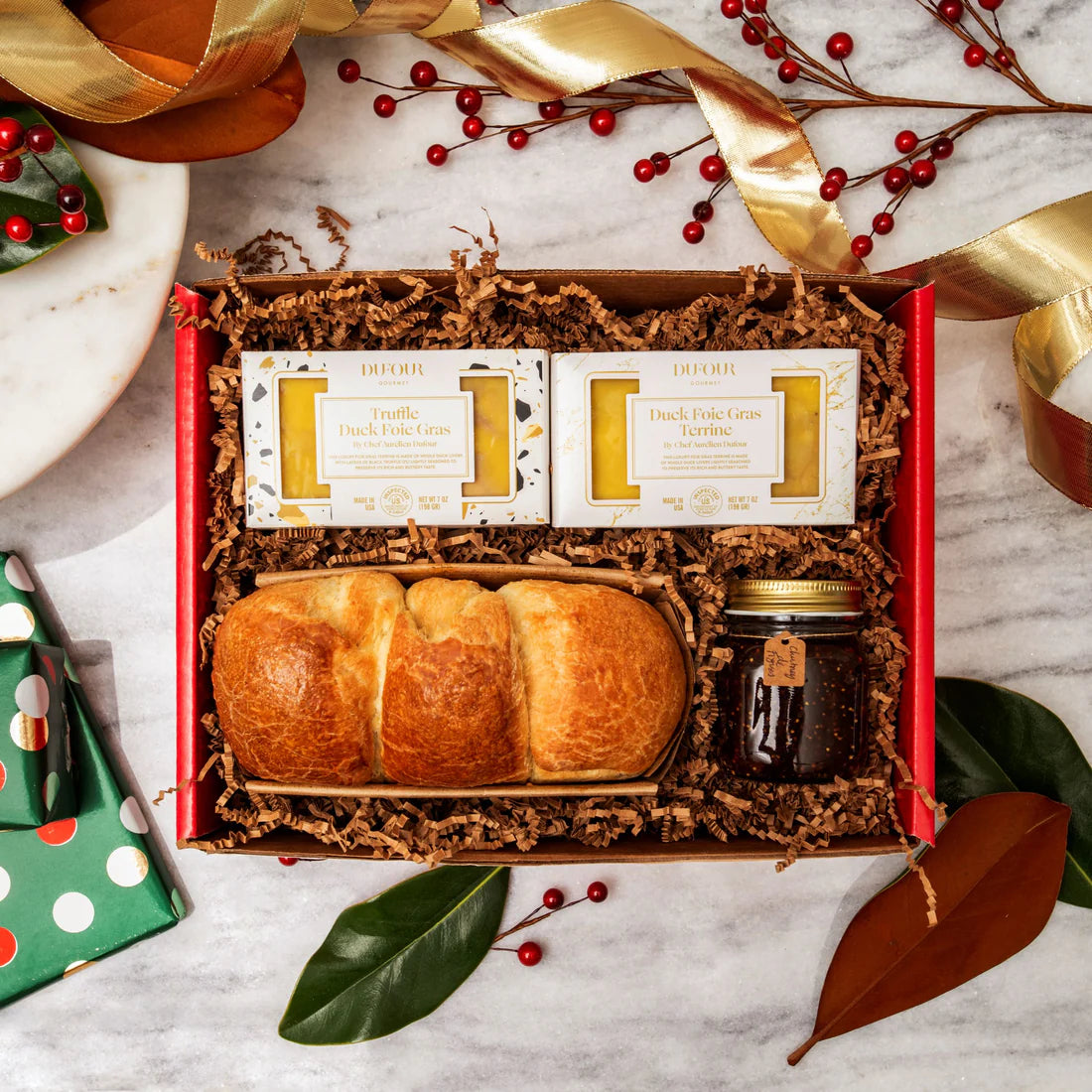 Our Foie Gras Terrine is slightly seasoned to enhance its rich and buttery flavor, and its creamy texture melts in your mouth. This terrine is perfect paired with a homemade brioche and sweet fig spread to satisfy your loved ones.